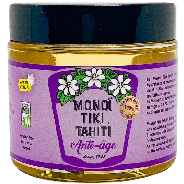 Le Monoi TIKI Anti-âge en pot combine l’action hydratante et nourrissante du monoï à un concentré de 8 huiles essentielles pour un effet lissant en revitalisant la peau. Il contribue à une meilleure tonicité de la peau et à une meilleure régénération des cellules de la couche superficielle de l’épiderme.