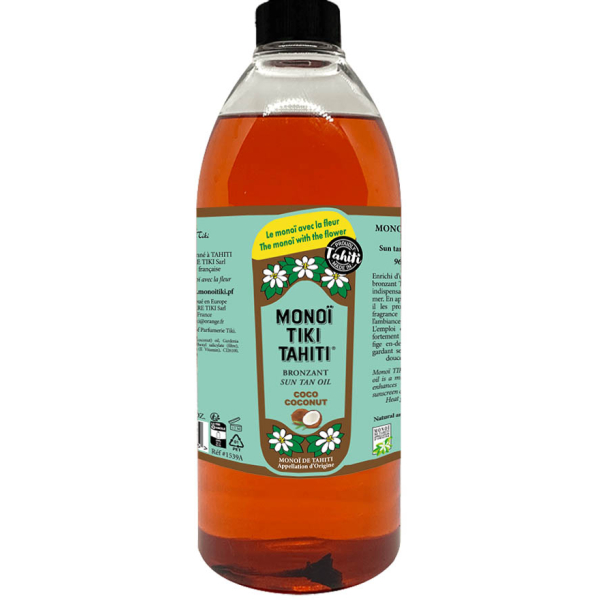 Pour convenir aux inconditionnels de la marque, aux familles nombreuses et aux professionnels, TIKI propose un conditionnement grand format du monoï Coco Bronzant.