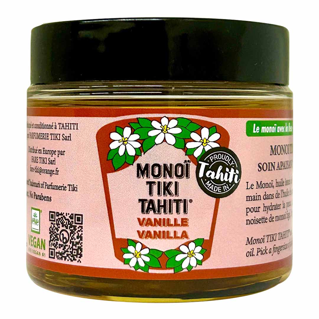 Le Monoi TIKI en pot est utilisable sans réchauffement. Il suffit de prélever une noisette au doigt ou à la spatule et de l’appliquer sur la peau. Il fond instantanément au contact de la peau. C’est le soin privilégié à adopter toute l’année.