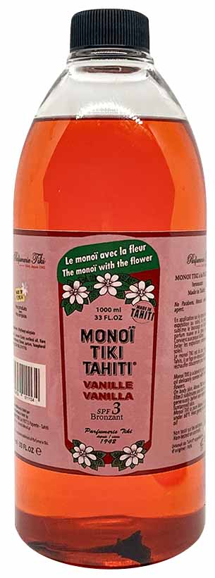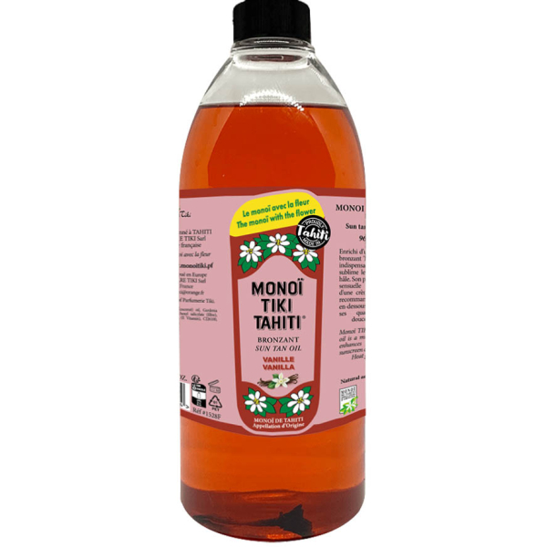 Pour convenir aux inconditionnels de la marque, aux familles nombreuses et aux professionnels, TIKI propose un conditionnement grand format du monoï Vanille Bronzant.
