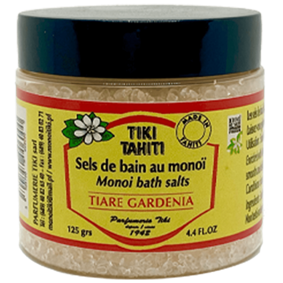 TIKI a créé ces sels de bain enrichis en Monoï de Tahiti A.O. TIKI. Vous retrouvez les vertus hydratantes et relaxantes du Monoï TIKI combinées avec la senteur des fleurs de Tiare Tahiti dans une eau délicatement salée rappelant les lagons tropicaux.